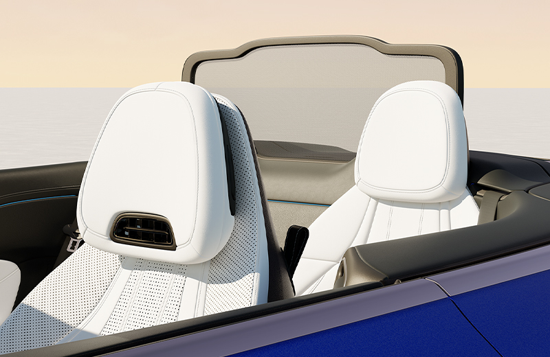 自动导流系统 - 标配敞篷轿跑车专属的AIRCAP®自动导流系统,只需按下一个按钮,拥有防尘网的前挡风板和后排头枕后的后挡风板即可向外展出,显著减少车内空气漩涡,让CLE敞篷轿跑车不止外形“拉风”,更能驾驭风的形状。